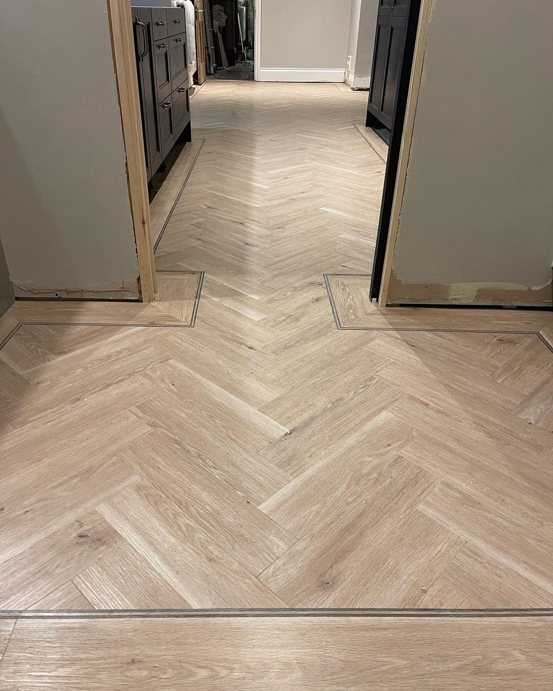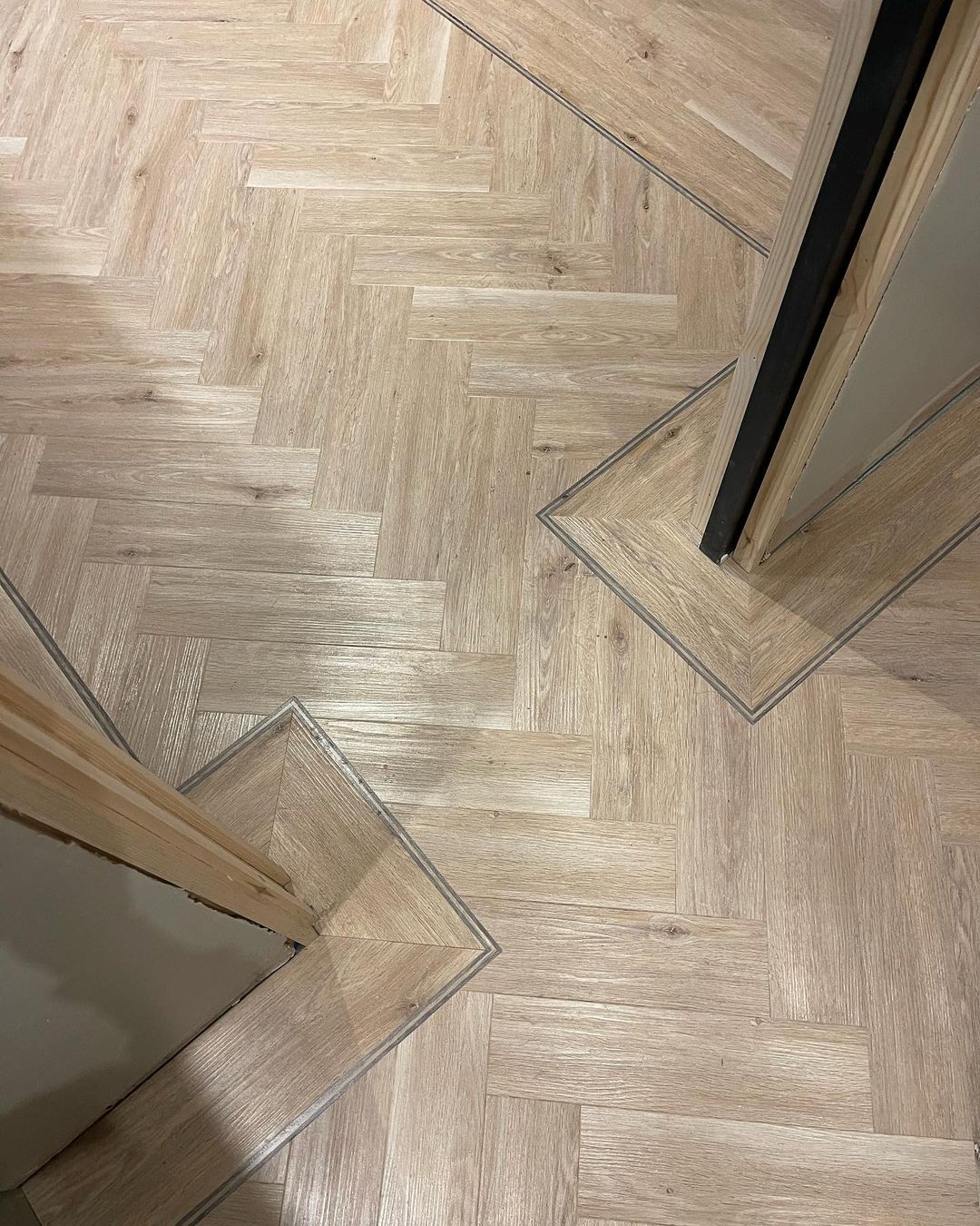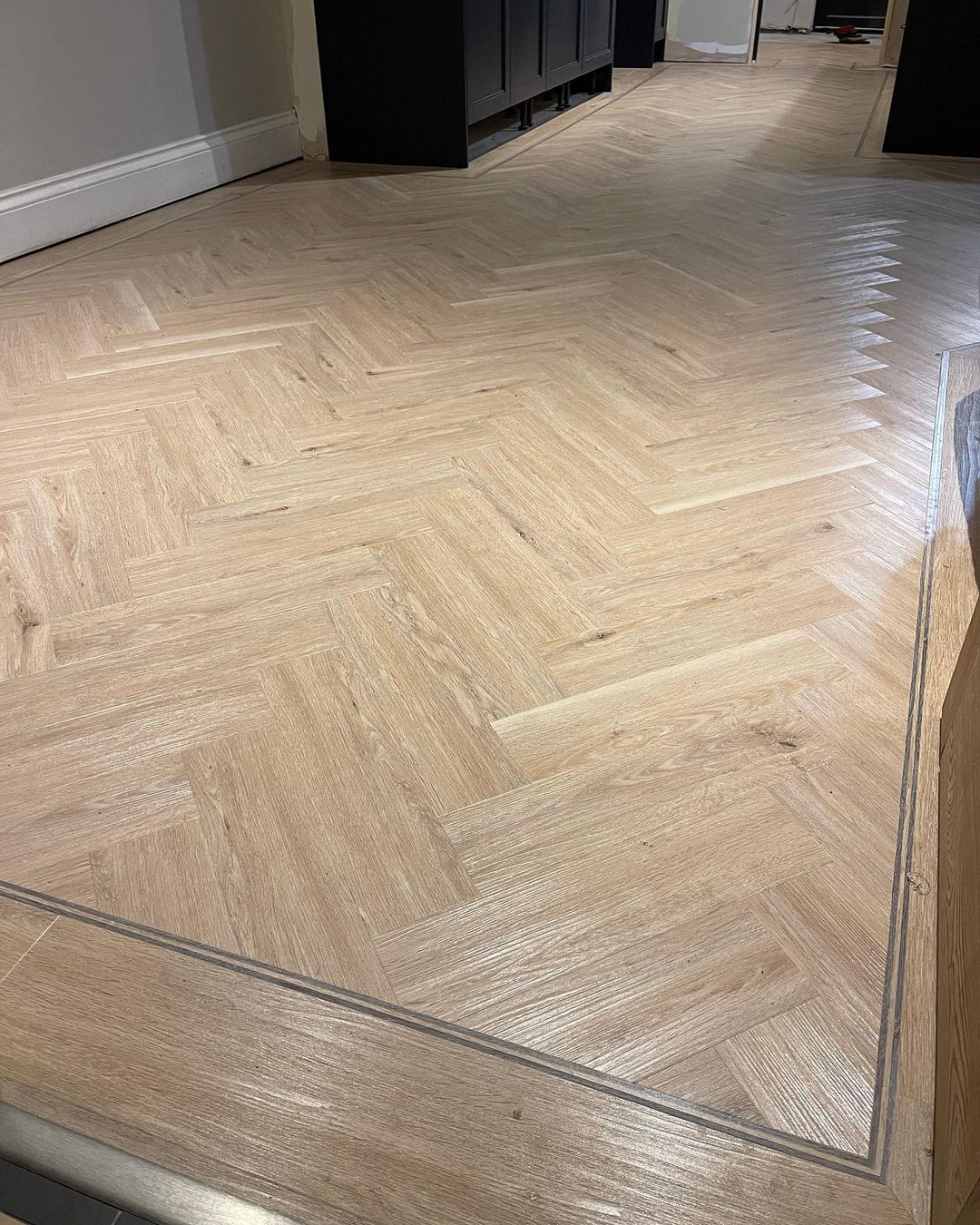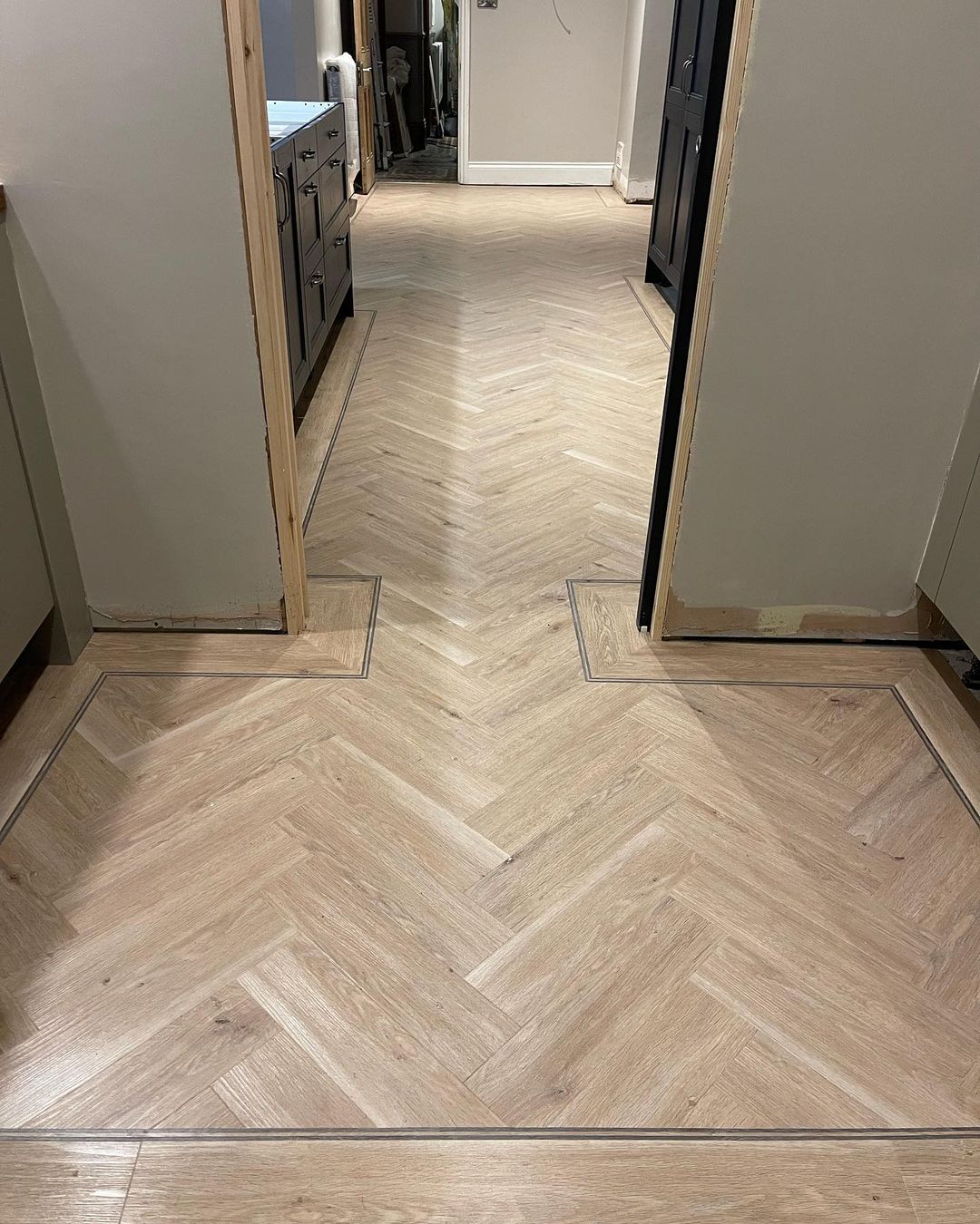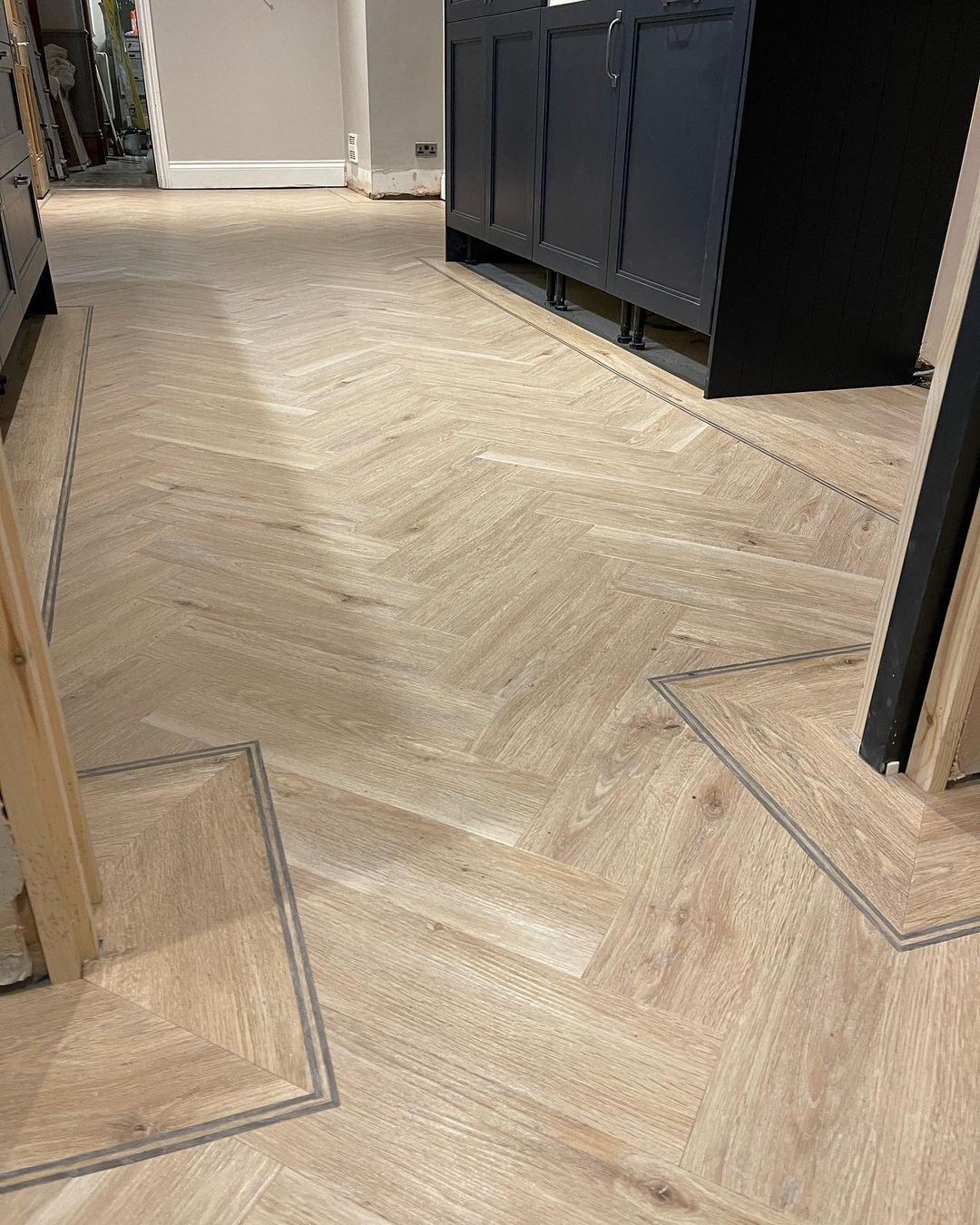 This is a great fit from MFLOWERSFLOORING. This is our Herringbone LVT range and is a really good example of borders and feature strips. The end result is stunning.