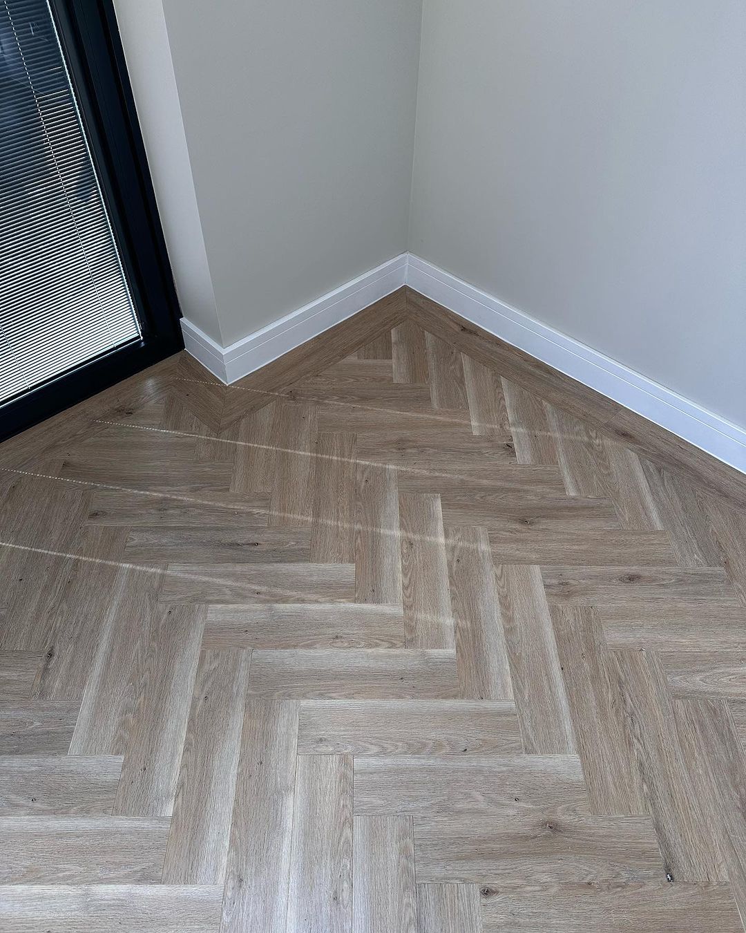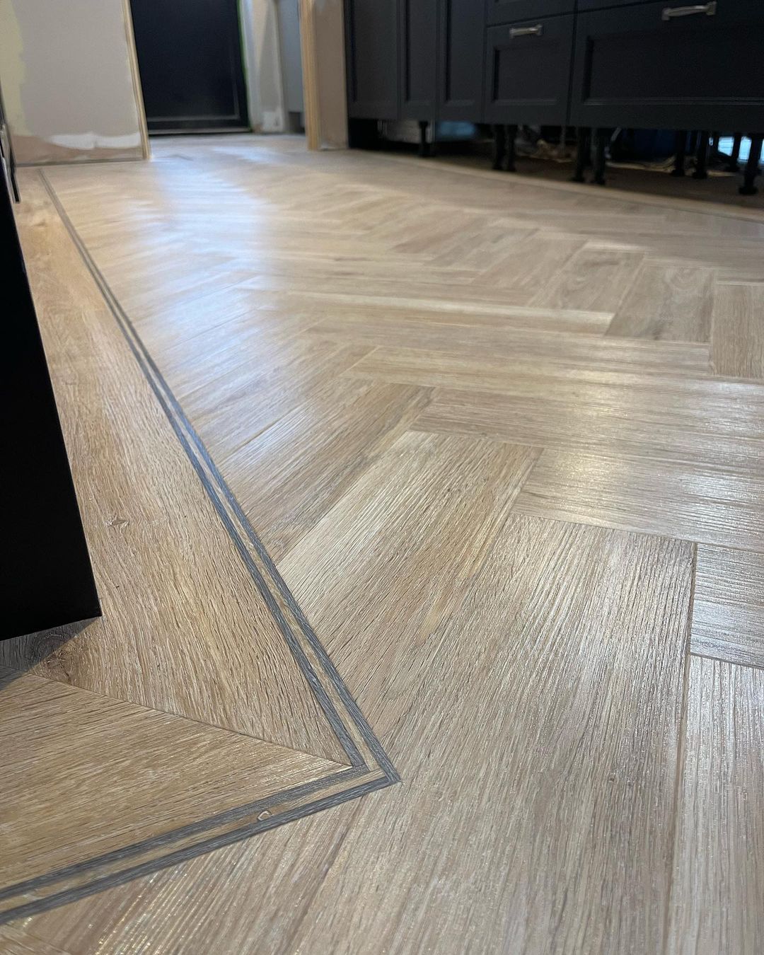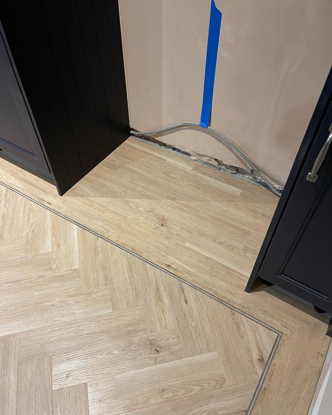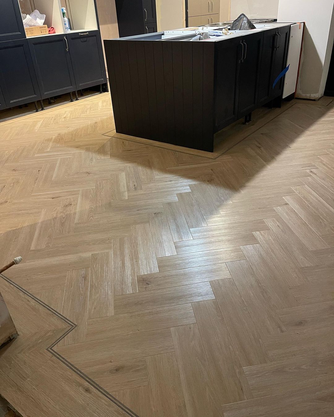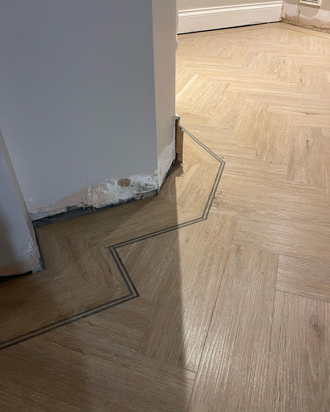 This is a great fit from MFLOWERSFLOORING. This is our Herringbone LVT range and is a really good example of borders and feature strips. The end result is stunning.