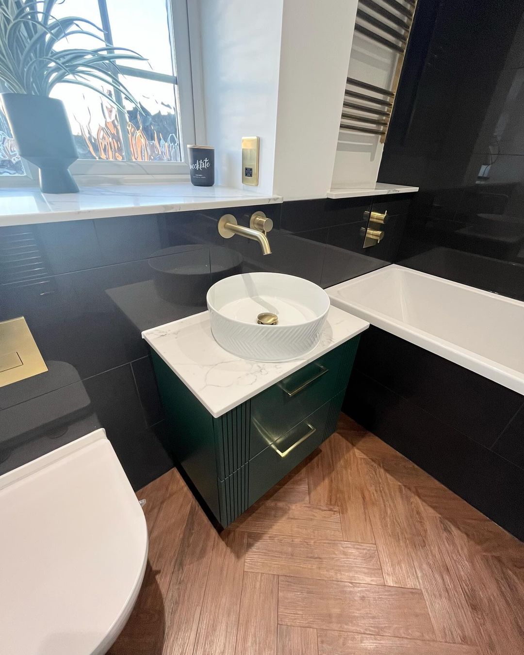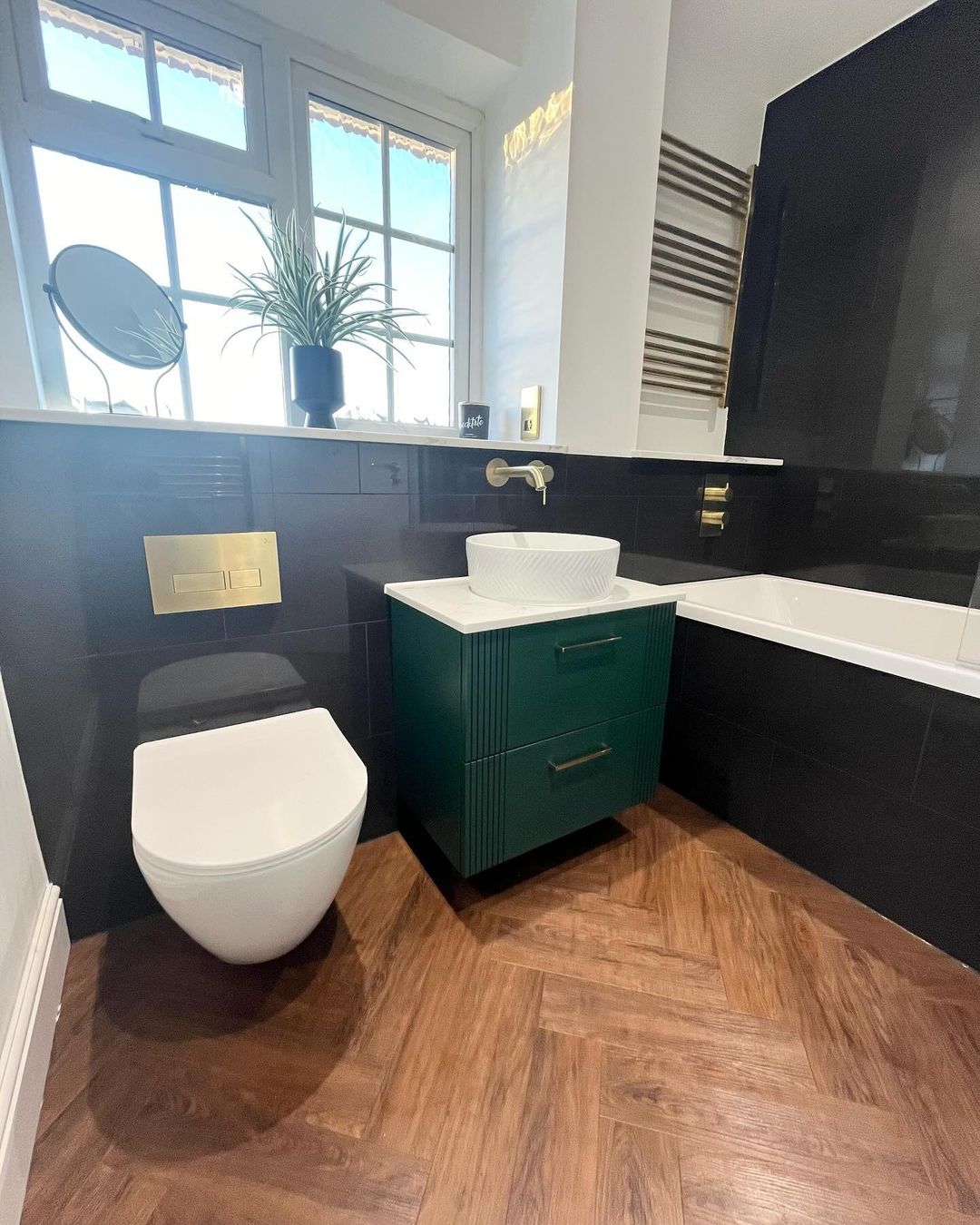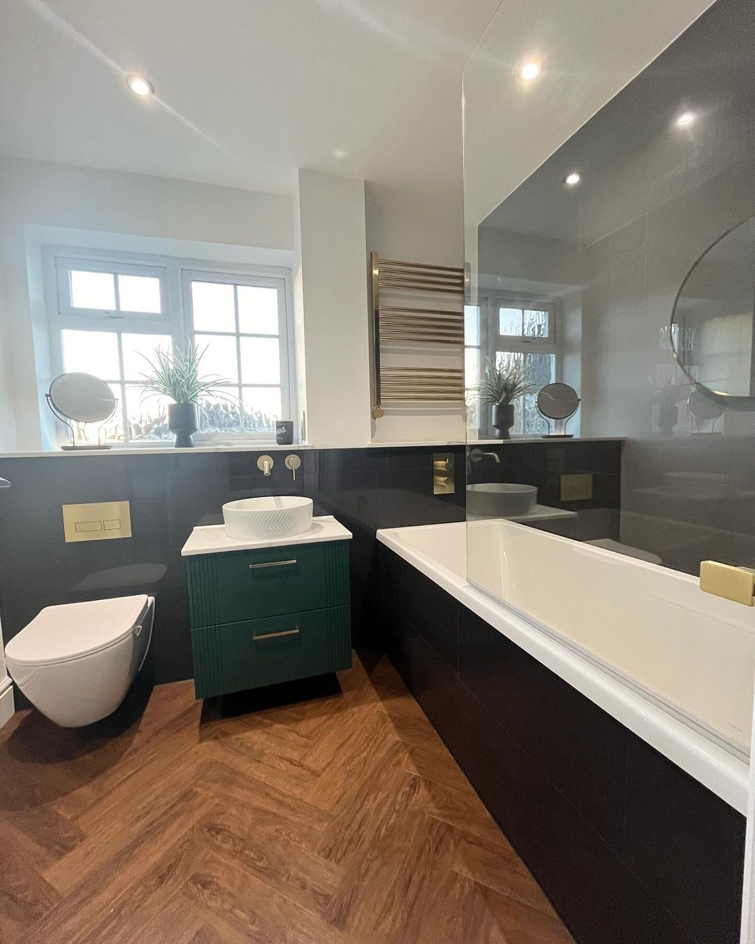 How about this for a stunning bathroom? Great fit from APB Developments set off brilliantly with the Walnut colour option from our very popular fitter-friendly Herringbone LVT range.